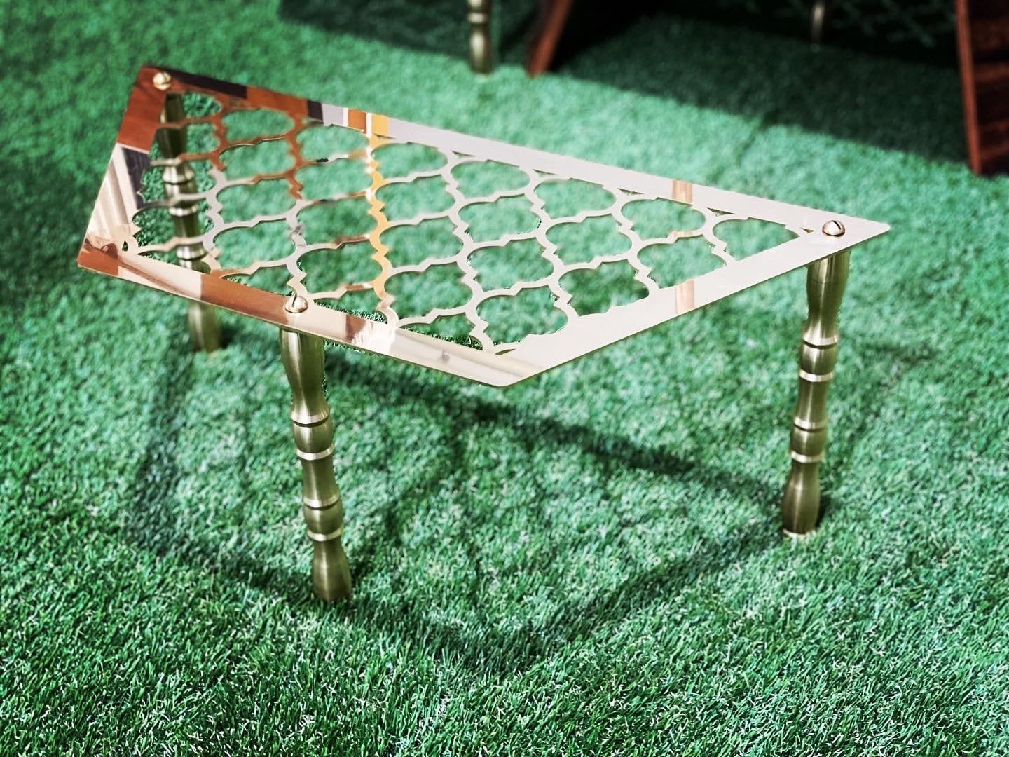 ありそうで無かったフル真鍮のヘキサテーブルで、レトロなデザインがより一層真鍮の美しい輝きとゴージャスさを醸し出します。