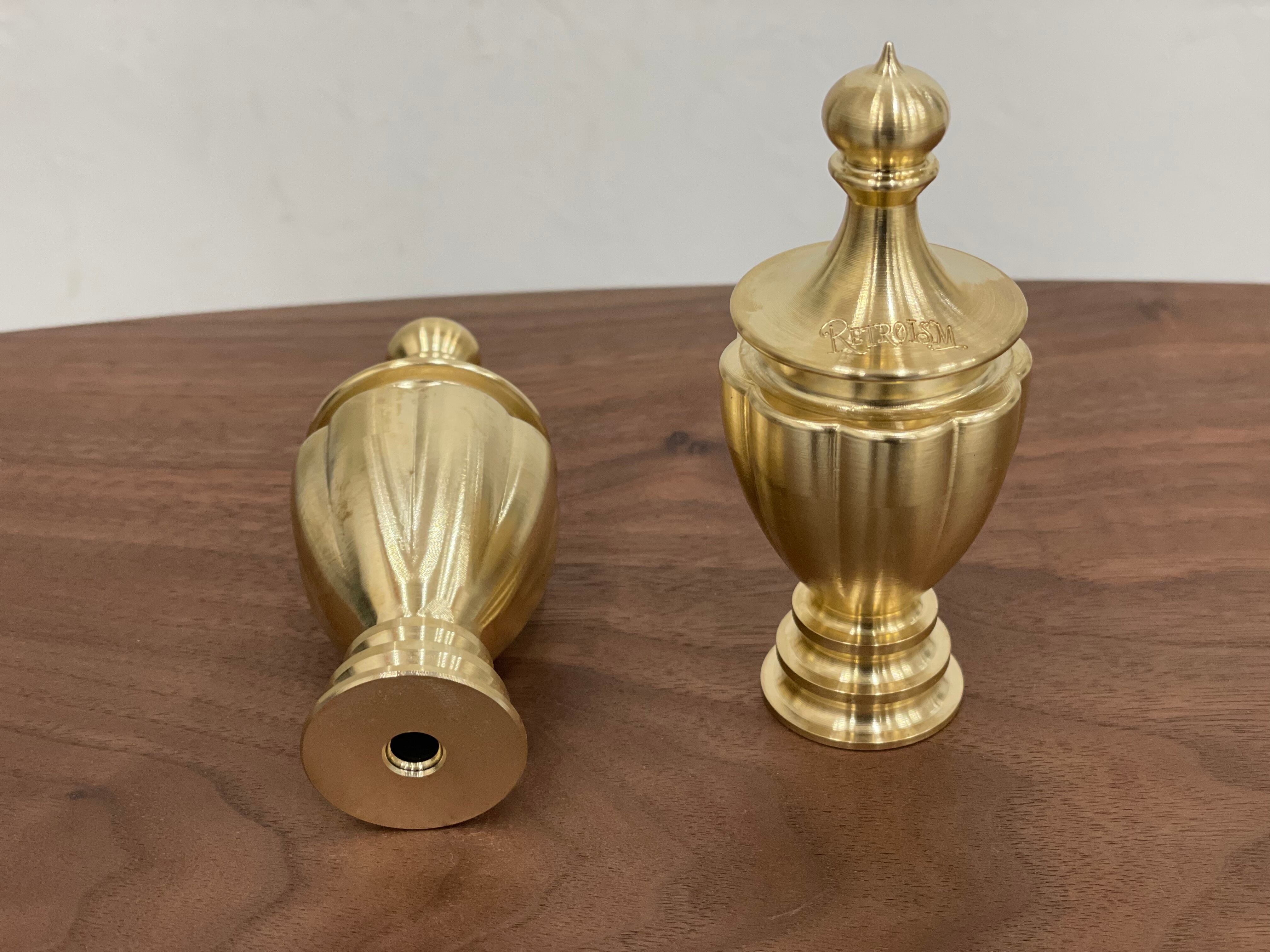 ありそうで無かった真鍮削り出し加工の先端マスコットで、レトロなデザインがより一層真鍮の美しい輝きとゴージャスさを醸し出します。