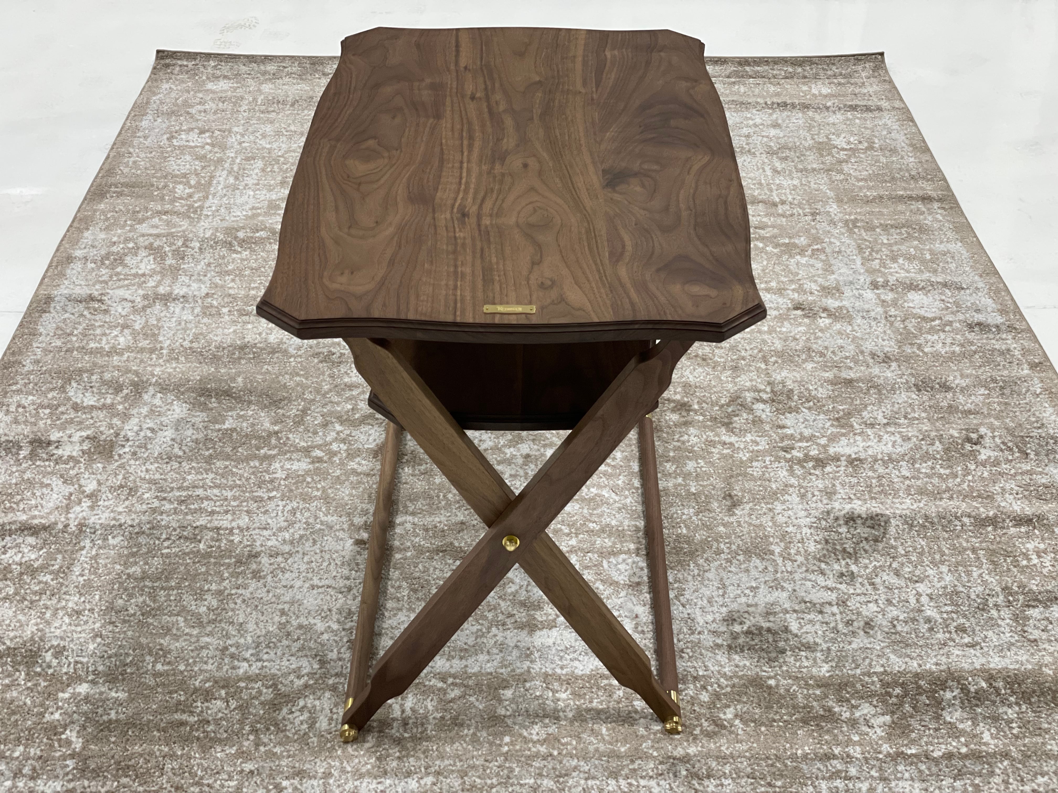 26mm厚の装飾ウォールナット天板が2段あり、脚は折りたたみ式で且つ組立式ですので、運搬や収納に便利です!