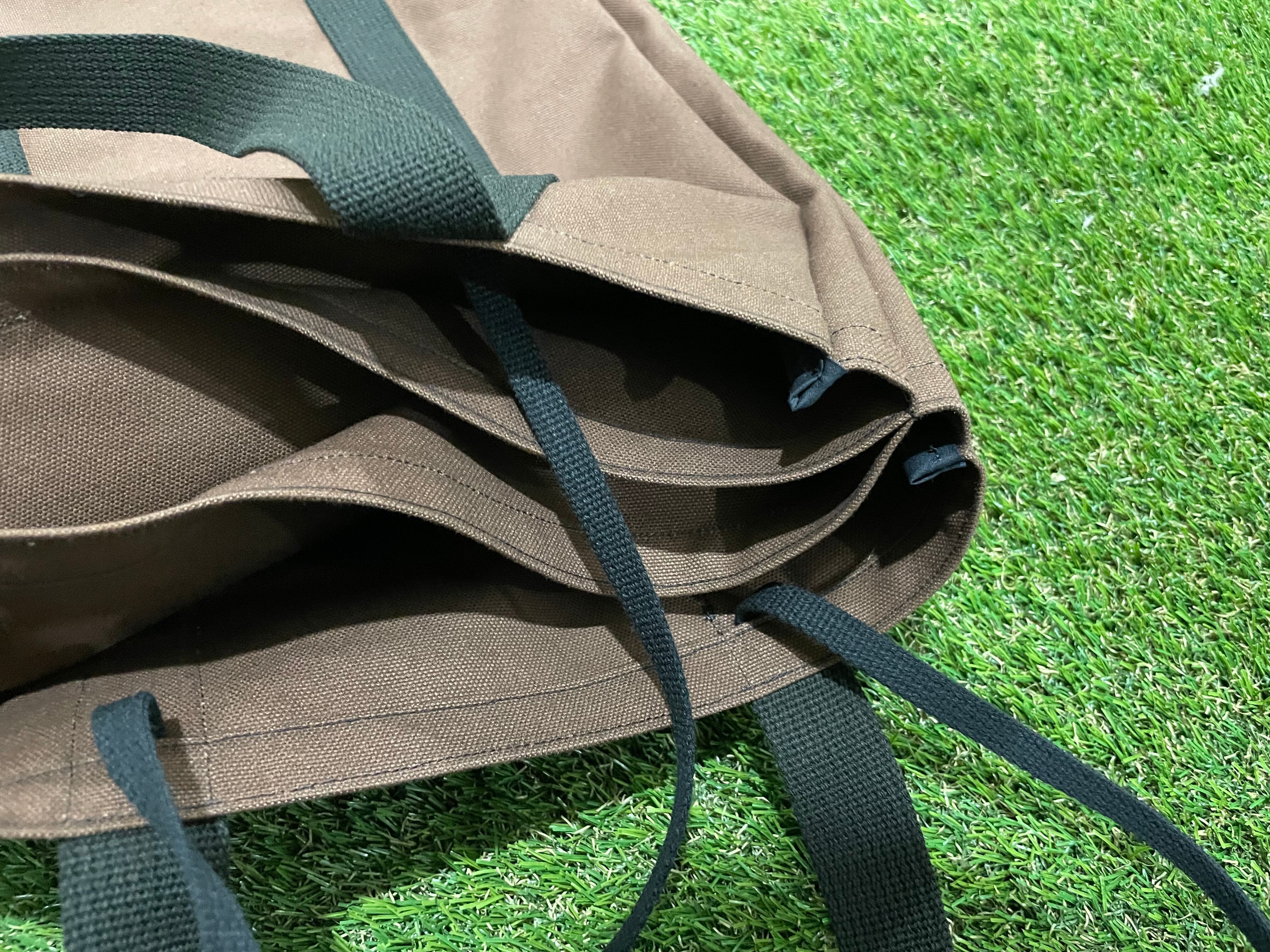 8号帆布の丈夫なケースで、仕切りやポケット、結び紐もついて機能的です。